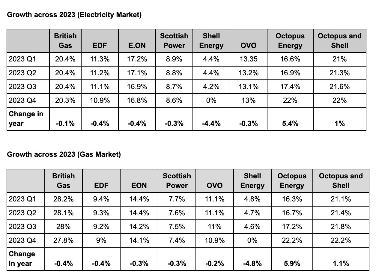 Octopus only large energy supplier gaining market share in 2023, Ofgem figures show
